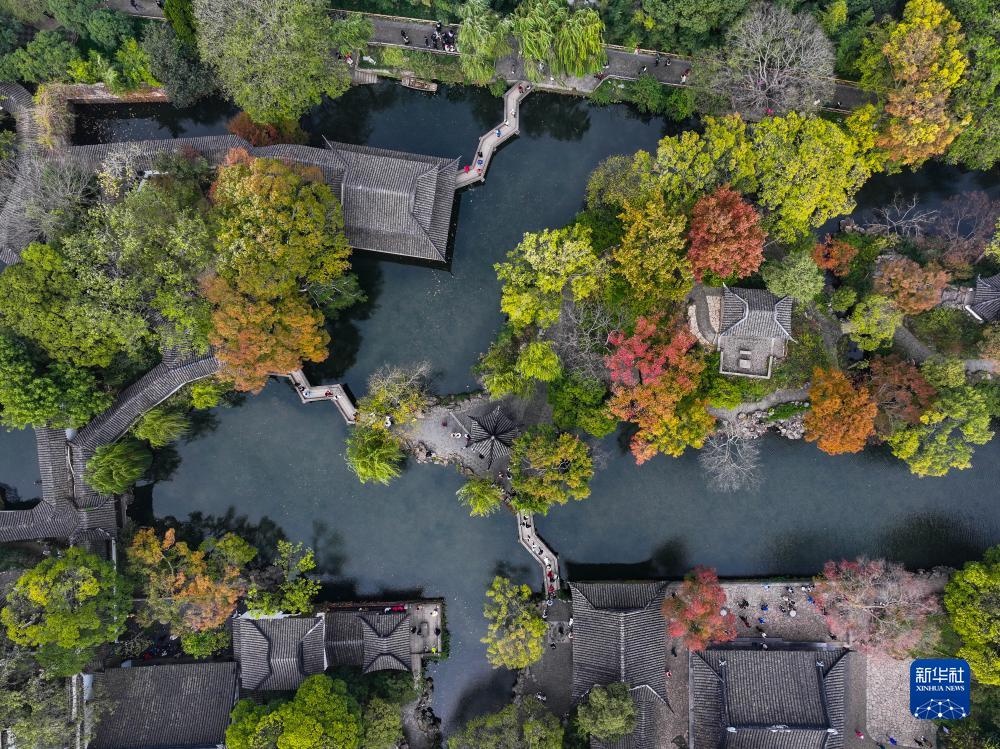 初冬時節,江蘇蘇州拙政園內色彩斑斕,景色如畫,吸引眾多游客前來參觀游覽。