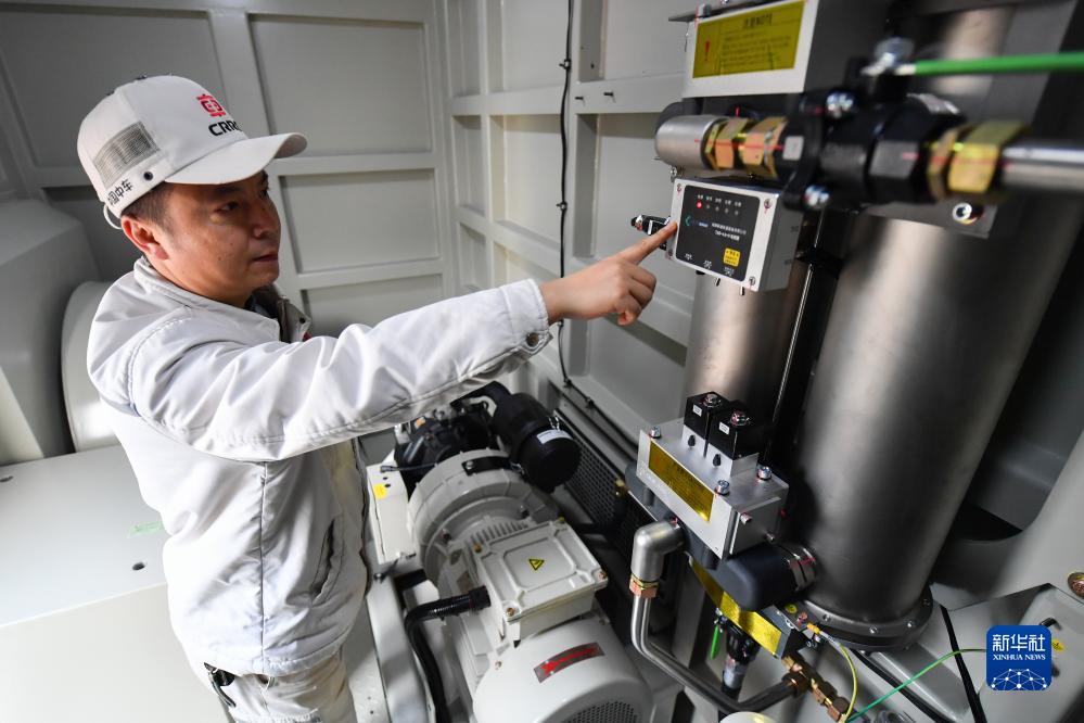 11月16日,中車株機公司的工作人員在機車內巡檢。