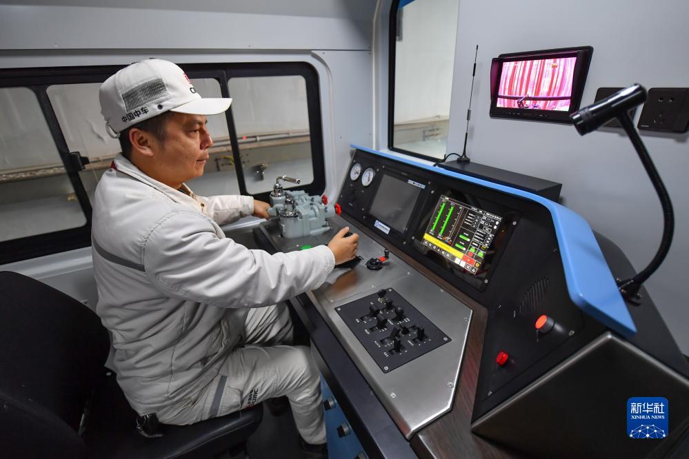 11月16日,中車株機公司的工作人員在機車內巡檢。