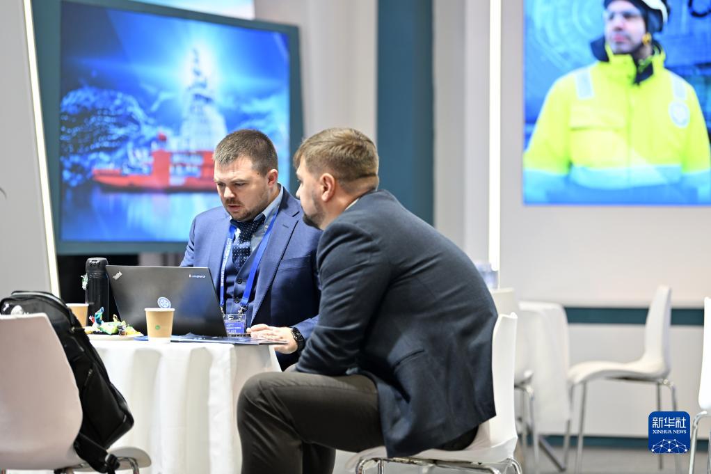 11月16日,在國家會展中心(天津),展商在博覽會上交流。