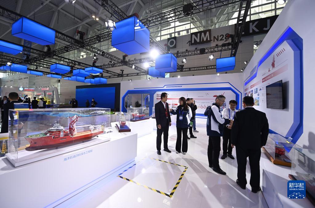 11月16日,參會嘉賓在2023天津國際航運產業博覽會海工裝備與船舶展區參觀交流。