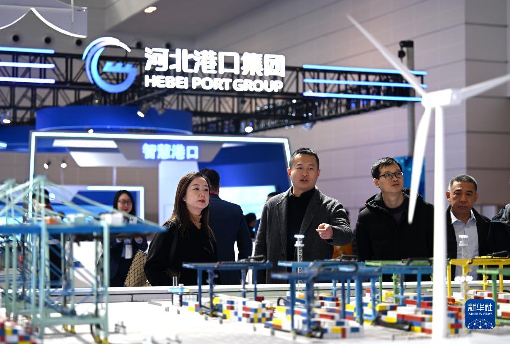 11月16日,參會嘉賓在2023天津國際航運產業博覽會天津港展區參觀。