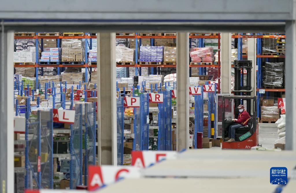 11月16日,在普洛斯唐山豐潤物流園,京東物流的叉車在運輸貨物。