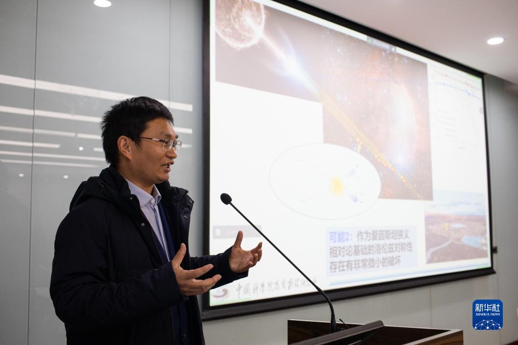 11月14日,在中國科學院高能物理研究所,文章通訊作者、中國科學院高能物理研究所研究員陳松戰在介紹研究成果。