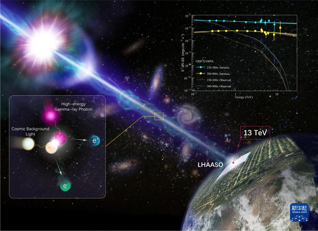 科學家利用我國高海拔宇宙線觀測站“拉索”(LHAASO),精確測量了迄今最亮伽馬暴GRB 221009A的高能輻射能譜,并據此獲得了對伽馬暴的全新認知。