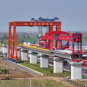 11月16日,阜淮鐵路全線首榀箱梁成功架設,施工進入全線架梁階段。阜淮鐵路位于安徽省北部,途經阜陽、亳州、宿州、淮北,正線全長約142.5公里,設計時速350公里。