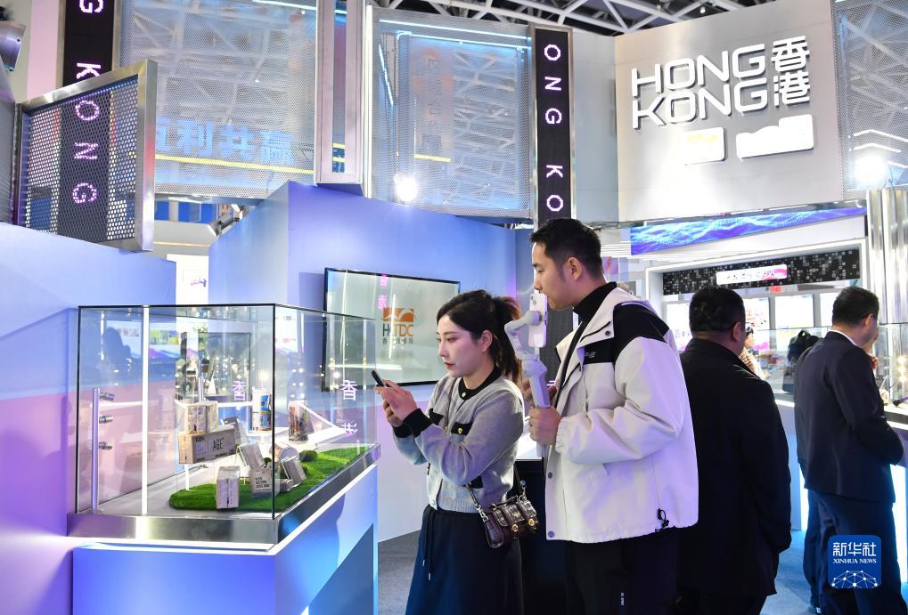 11月16日,觀眾在第七屆絲博會香港展位參觀。