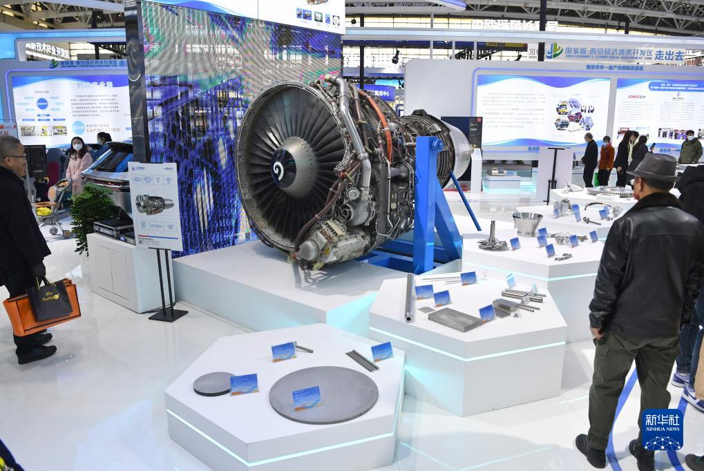 11月16日,觀眾在第七屆絲博會上參觀一款航空發動機。