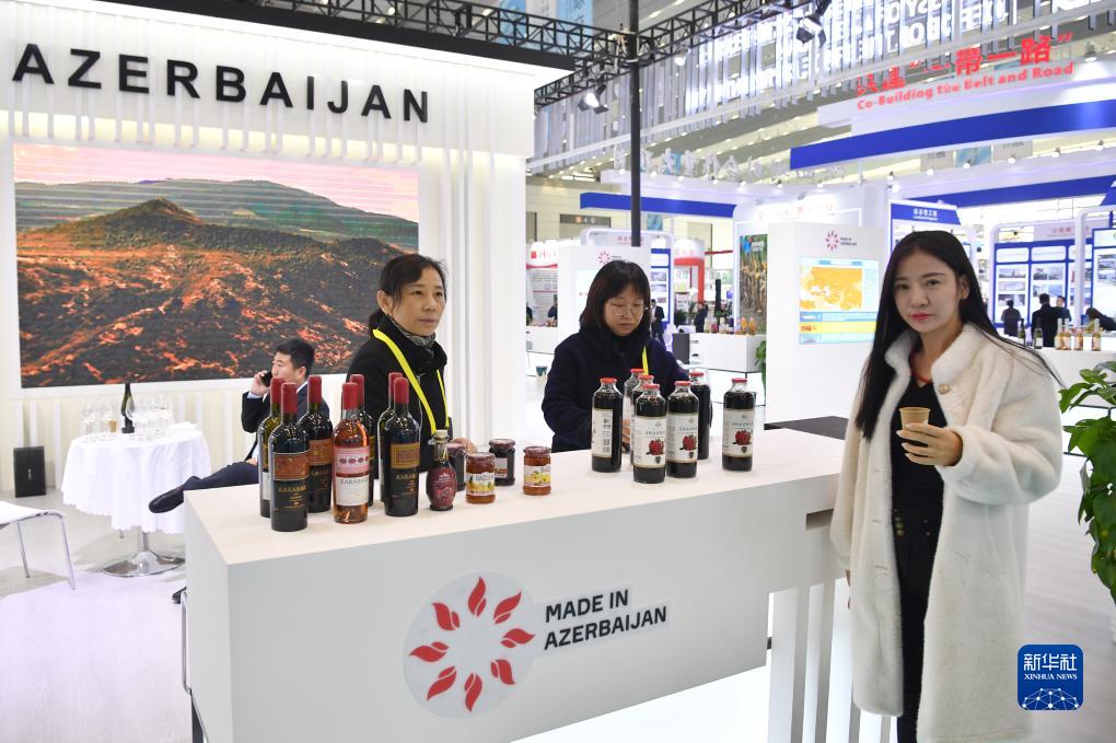 11月16日,觀眾在第七屆絲博會上品嘗阿塞拜疆展位上的飲料產品。