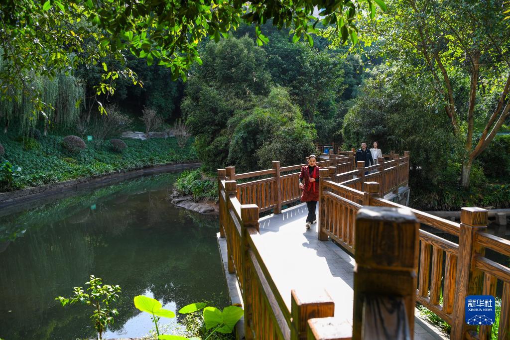 11月16日,在重慶市渝北區龍山街道龍華社區,居民在盤溪河岸邊散步、休閑。
