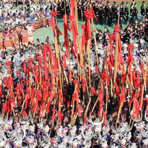 當日,貴州省黔東南苗族侗族自治州雷山縣迎來苗族同胞的傳統節日苗年。今年苗年又恰逢十三年一次的鼓藏節,歡樂氣氛格外濃烈。來自縣內外的數萬名苗族群眾歡聚雷山縣城,通過盛裝巡游、非遺展示、千人長桌宴等形式歡度節日。苗年和鼓藏節均為國家級非物質文化遺產。