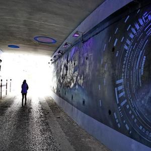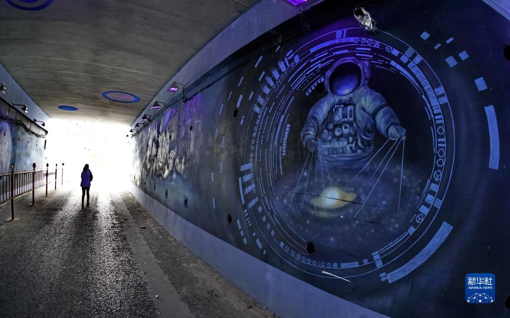 鐵路地下通道經過安保數字化和環境改造后成為居民喜愛的“元宇宙時光隧道”(11月16日攝)。