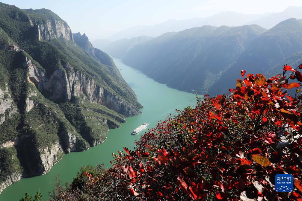 近期,長江三峽兩岸紅葉如火似霞,美不勝收。