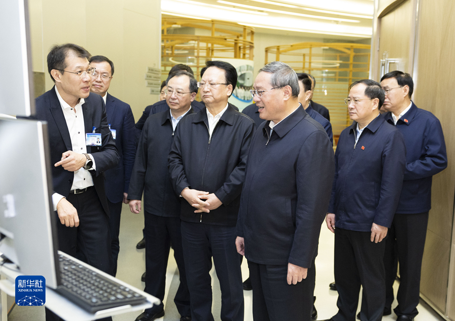11月14日至16日,中共中央政治局常委、國務院總理李強在黑龍江、吉林調研。這是11月15日,李強在中國科學院長春光機所參觀實驗室及新成果展示。