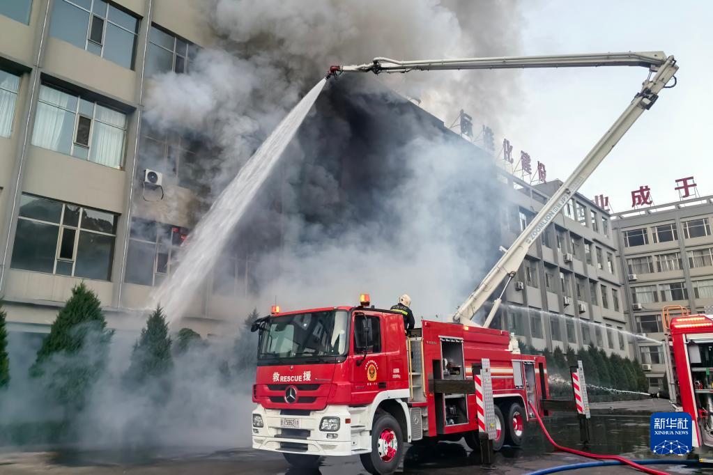 山西省呂梁市離石區永聚煤業聯建樓火災救援現場(11月16日攝)。