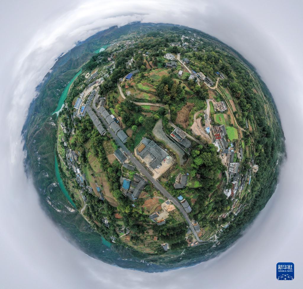 這是11月15日拍攝的貴州省石阡縣國榮鄉樓上古寨風光(無人機全景照片)。