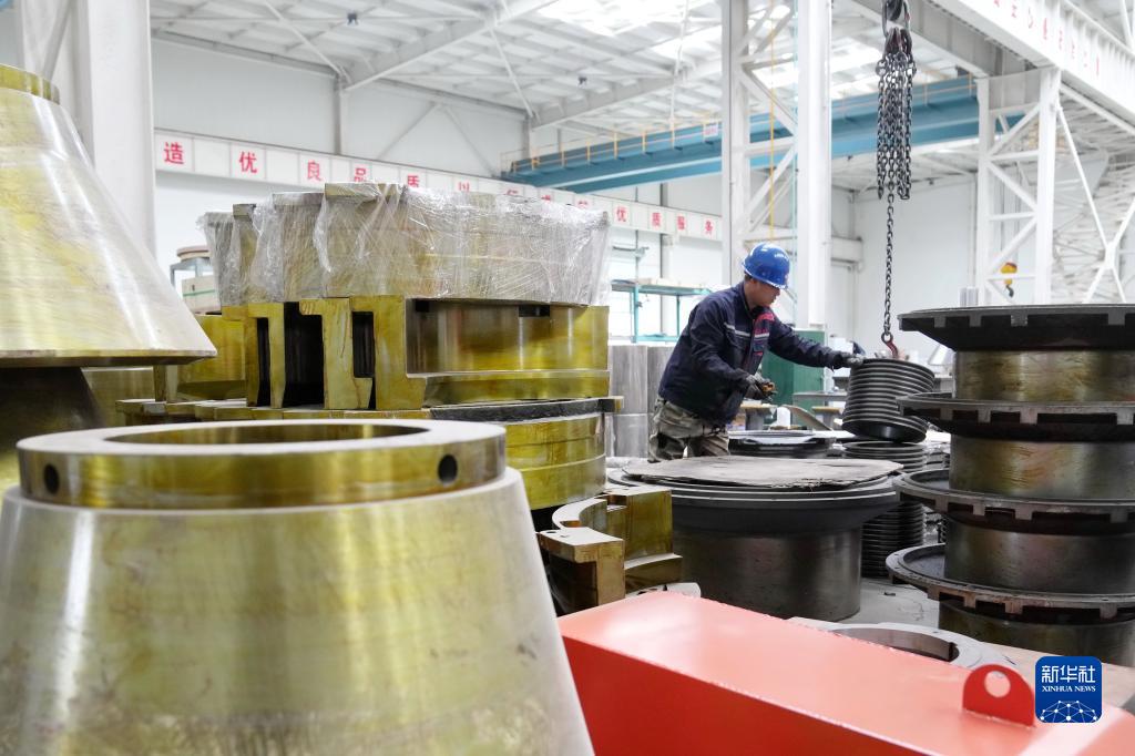 11月16日,工人在河北省遵化市一家礦山機械設備企業的生產車間工作。
