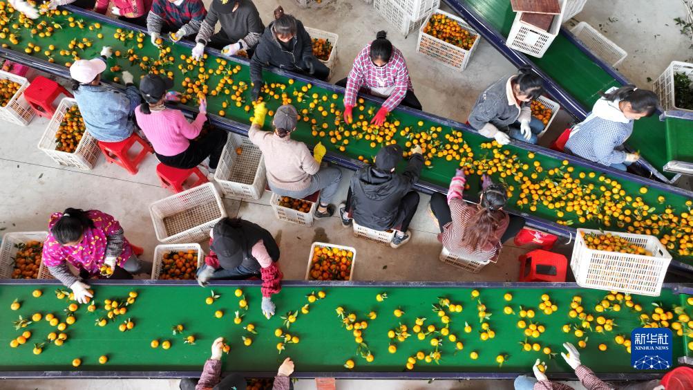 11月16日,在廣西柳州市柳城縣華僑農場,工作人員分揀蜜桔。