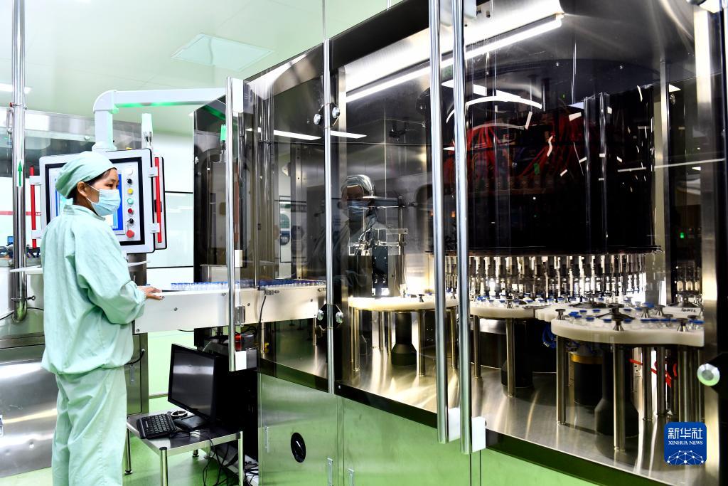 7月7日,在菏澤了未元生物醫藥大健康產業園,工作人員在抗生素生產線值守。