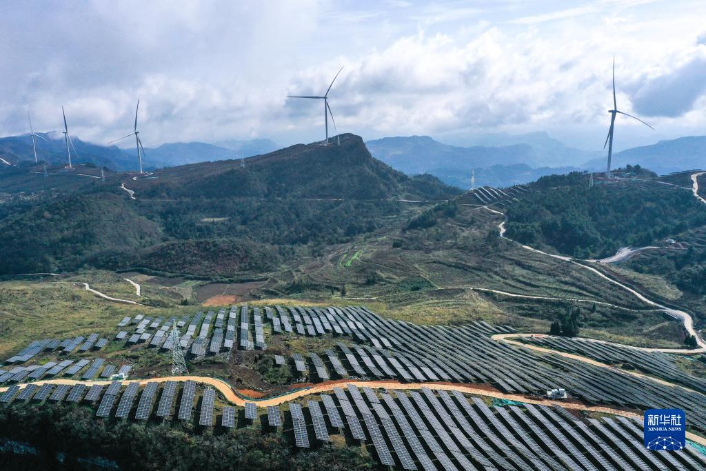 這是11月16日拍攝的貴州省石阡縣頂董坡風電光伏項目(無人機照片)。