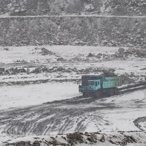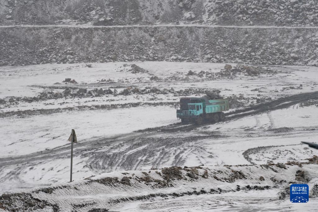 11月16日,在位于鶴崗市蘿北縣的中國五礦集團(黑龍江)石墨產業有限公司云山石墨礦內,純電動礦卡在運輸石墨礦石原石。