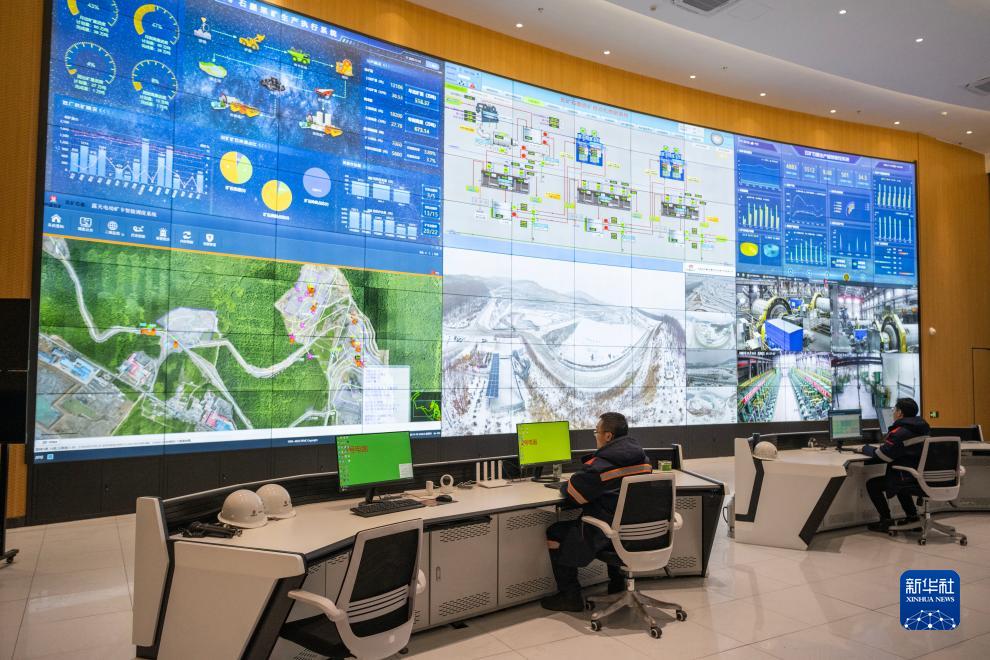 11月16日,在位于鶴崗市蘿北縣的中國五礦集團(黑龍江)石墨產業有限公司,工作人員在智慧管控中心內作業。