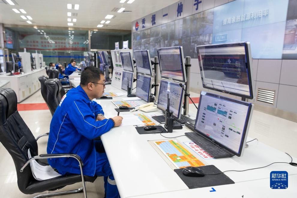 11月14日,在黑龍江省鶴崗市,中海石油華鶴煤化有限公司的工作人員在中央控制室內作業。