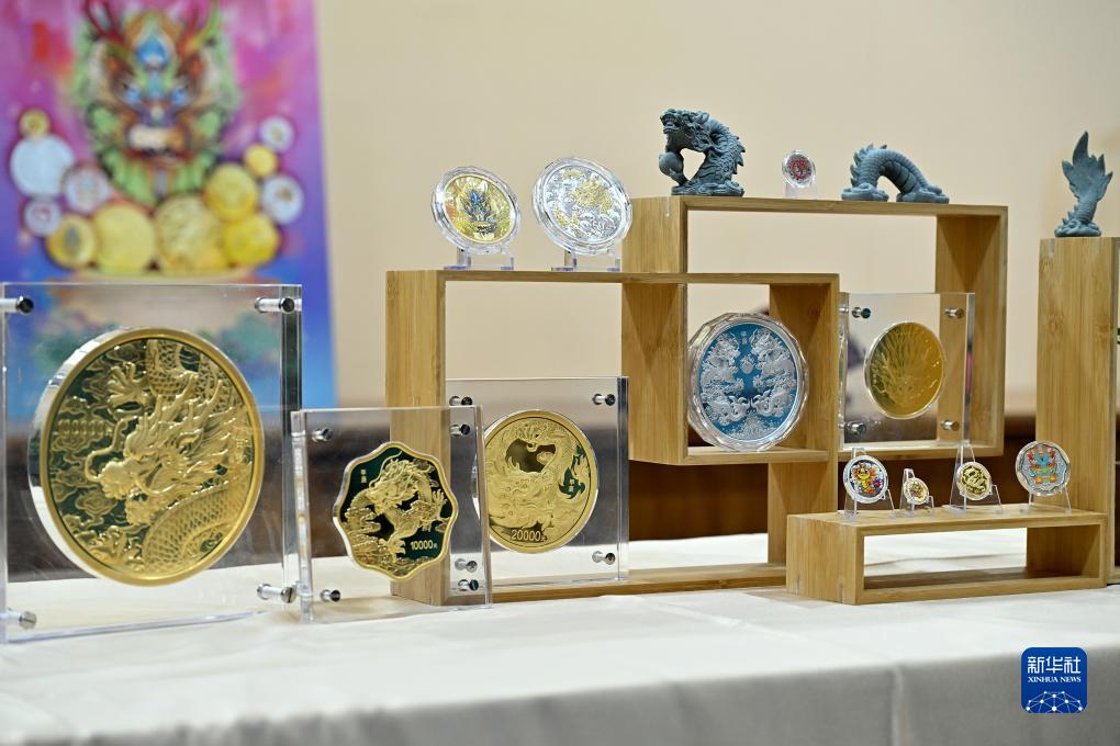 這是11月17日拍攝的活動現場擺放的2024中國甲辰(龍)年貴金屬紀念幣一套。
