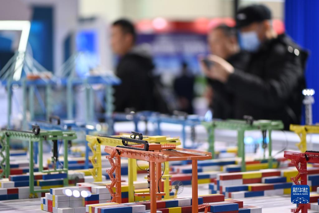 11月17日,觀眾在參觀天津港“智慧零碳”碼頭模型。