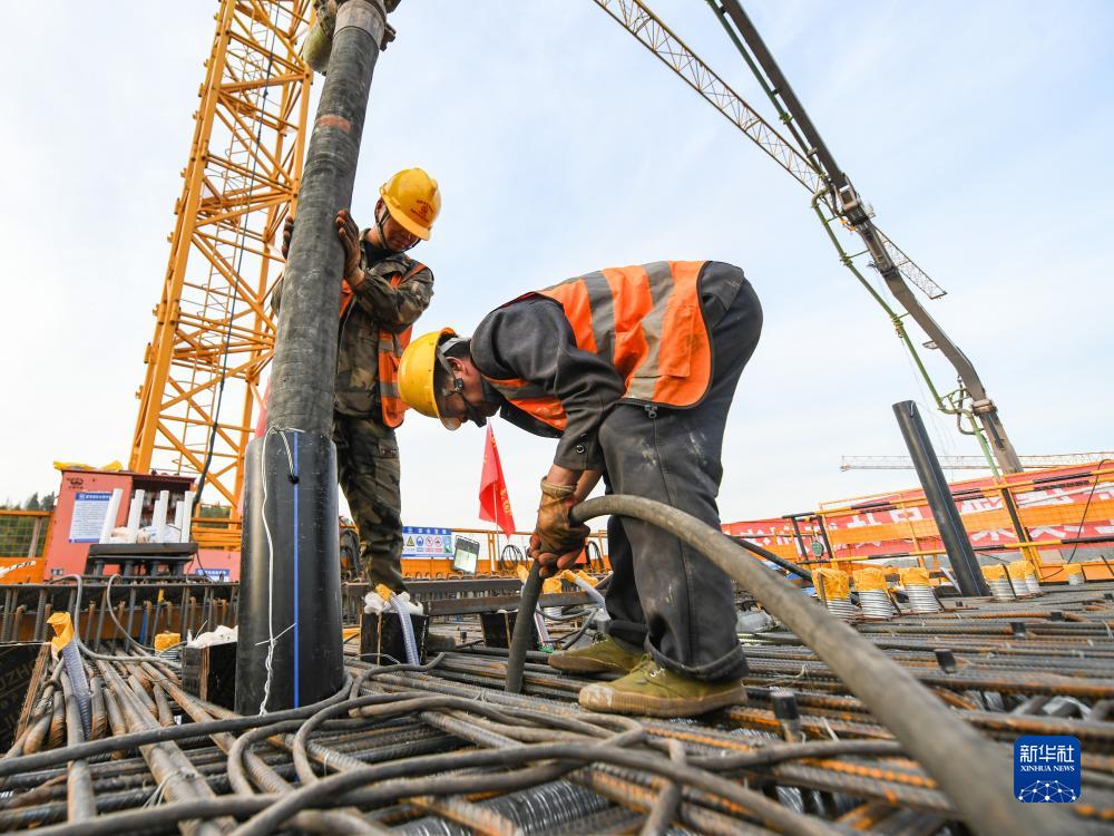 11月17日,工人在進行混凝土澆筑作業。