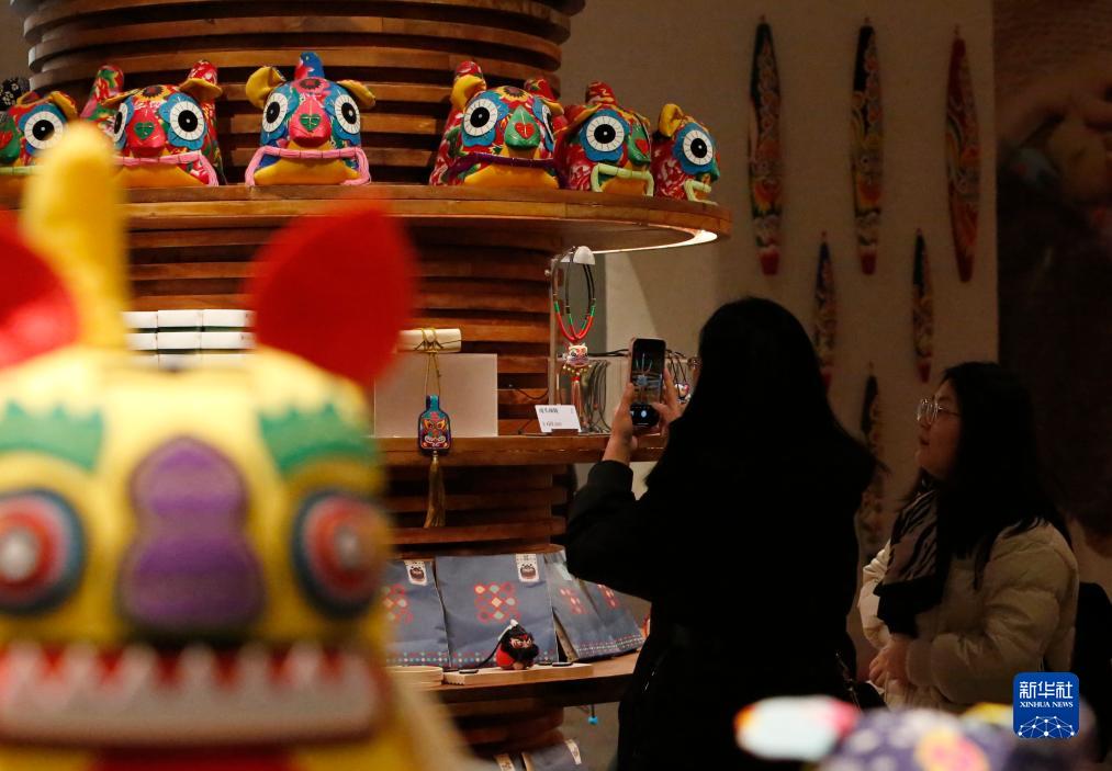 11月16日,游人在“只有河南·戲劇幻城”景區的非遺體驗店內參觀拍照。