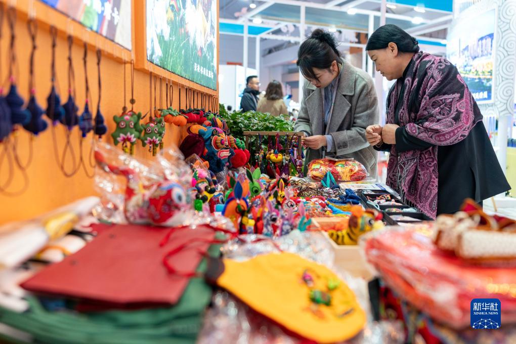11月17日,觀眾在2023中國國際旅游交易會上選購小飾品。
