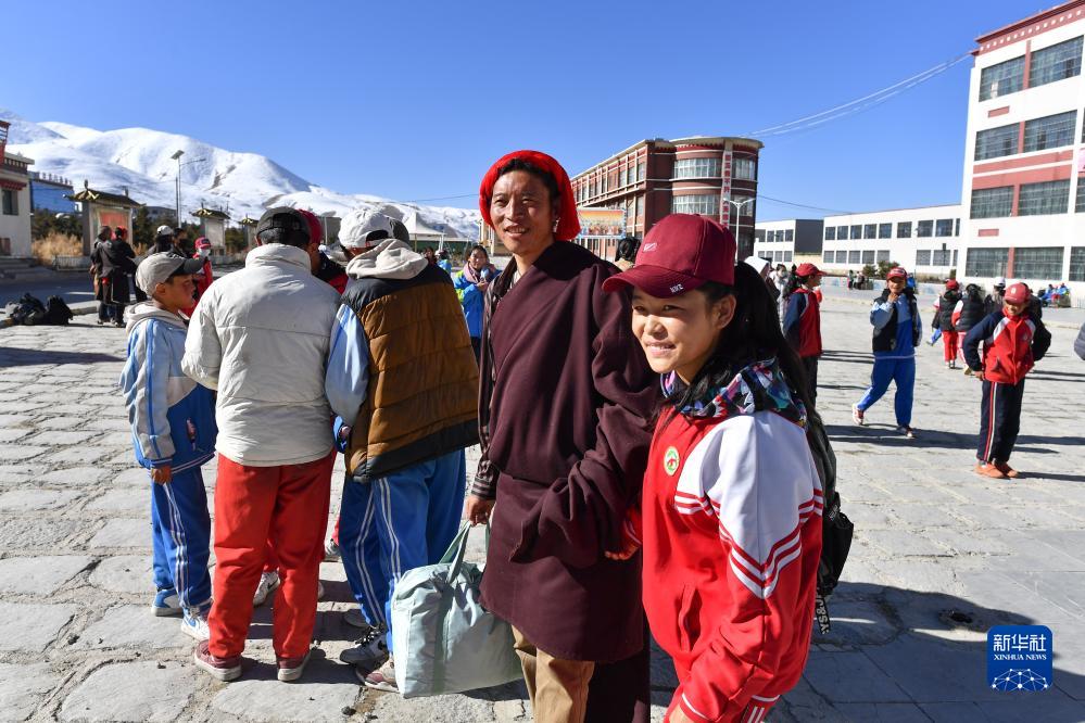 斯曲卓瑪的父親來學校接女兒回家(11月15日攝)。
