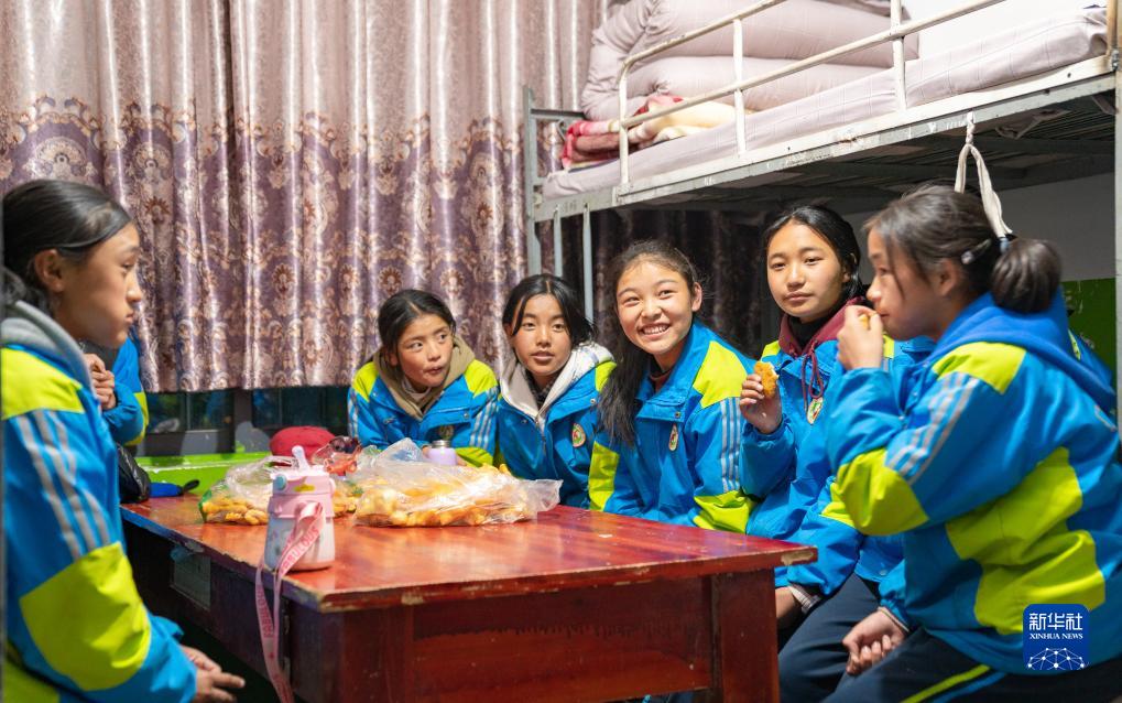 每天下了晚自習,斯曲卓瑪會和好朋友挽著手走回宿舍,在宿舍里完成老師布置的蹲起和仰臥起坐等鍛煉任務。熄燈之后,斯曲卓瑪還要再跟舍友們“夜談”一會兒。她說,學校就像她另一個家。