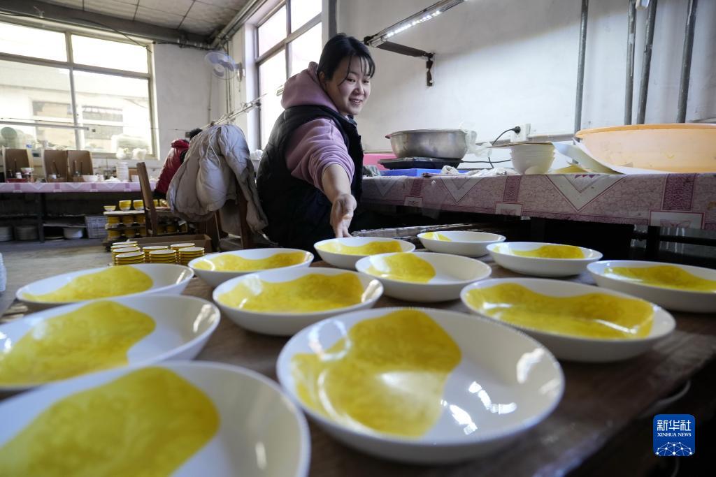 11月17日,河北省灤州市榛子鎮啞叭莊子村一家瓷器加工企業的工人在整理瓷器。