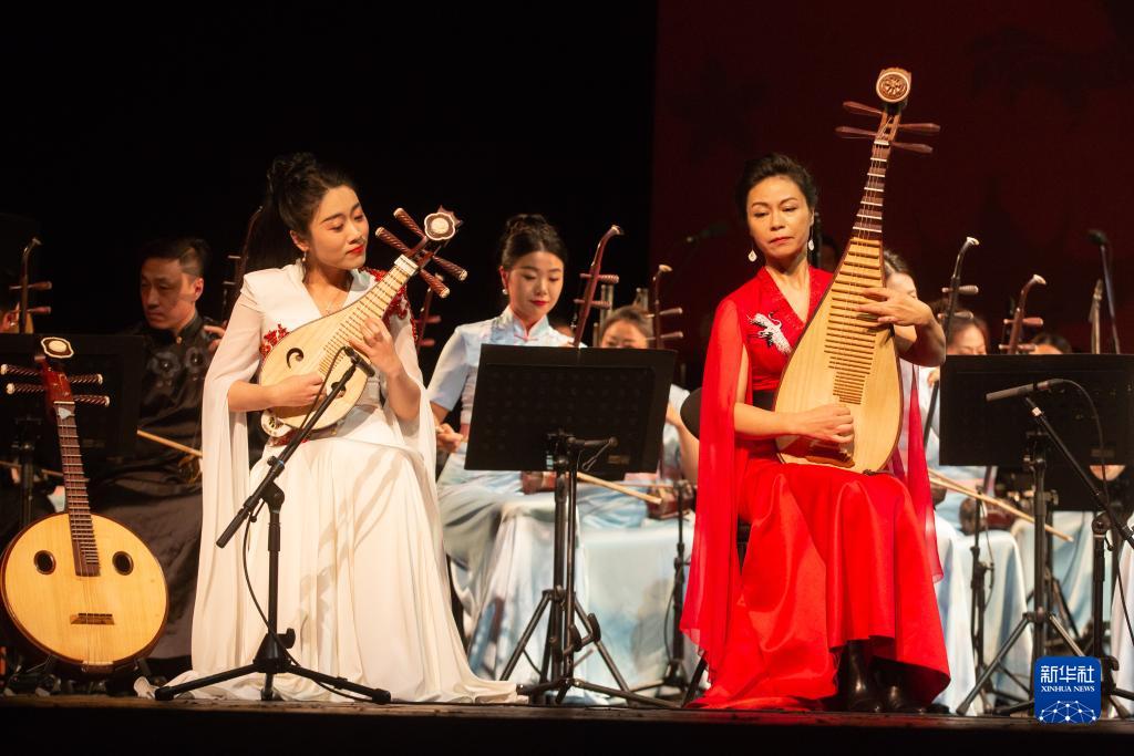 11月16日晚,在俄羅斯圣彼得堡,中國演奏家在“中國文化節”《江山如畫》民族音樂會上表演。