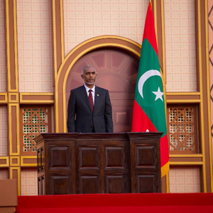 馬爾代夫當選總統穆伊茲17日在該國首都馬累共和國廣場舉行的議會特別會議上宣誓就職。