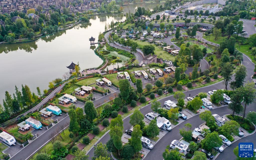 這是11月17日拍攝的重慶璧山秀湖汽車露營公園景色(無人機照片)。