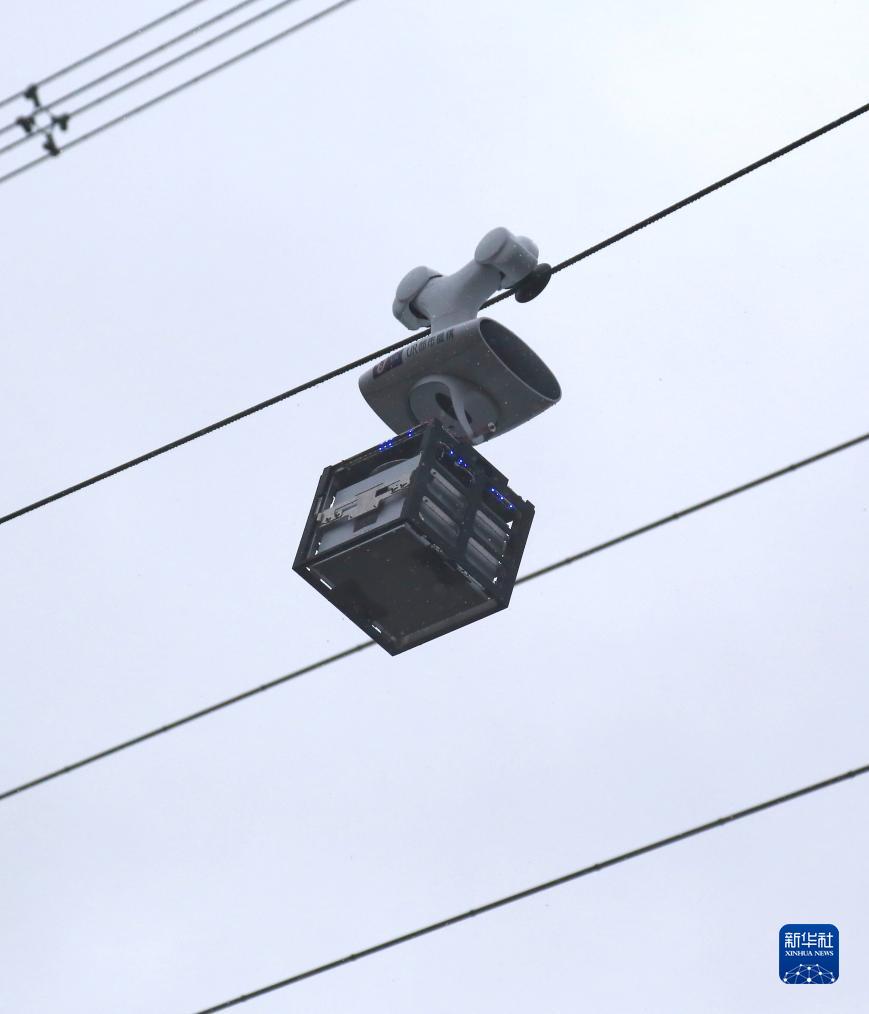 11月17日,在日本川崎市,空中索道機器人在面向媒體的試驗說明會上演示運送商品。