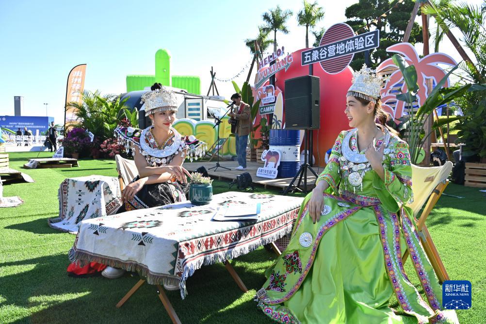 11月18日,兩名身著民族服裝的姑娘在汽車營地展區體驗。