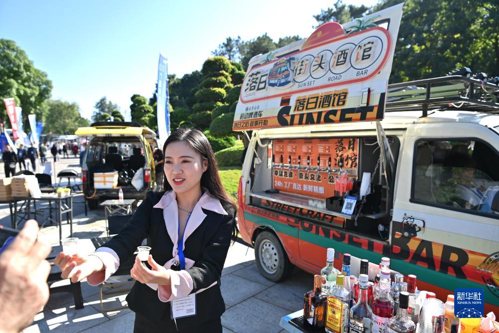 11月18日,一名汽車尾箱攤主在推銷飲品。
