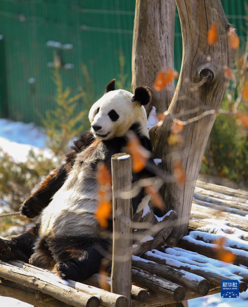 降雪天氣過后,生活在沈陽森林動物園的大熊貓們在冬日暖陽中悠然自得。