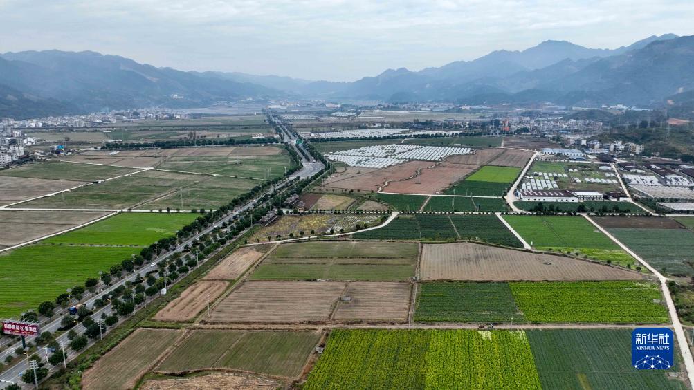 11月18日拍攝的貴州省黔東南苗族侗族自治州榕江縣車江萬畝大壩蔬菜基地(無人機照片)。