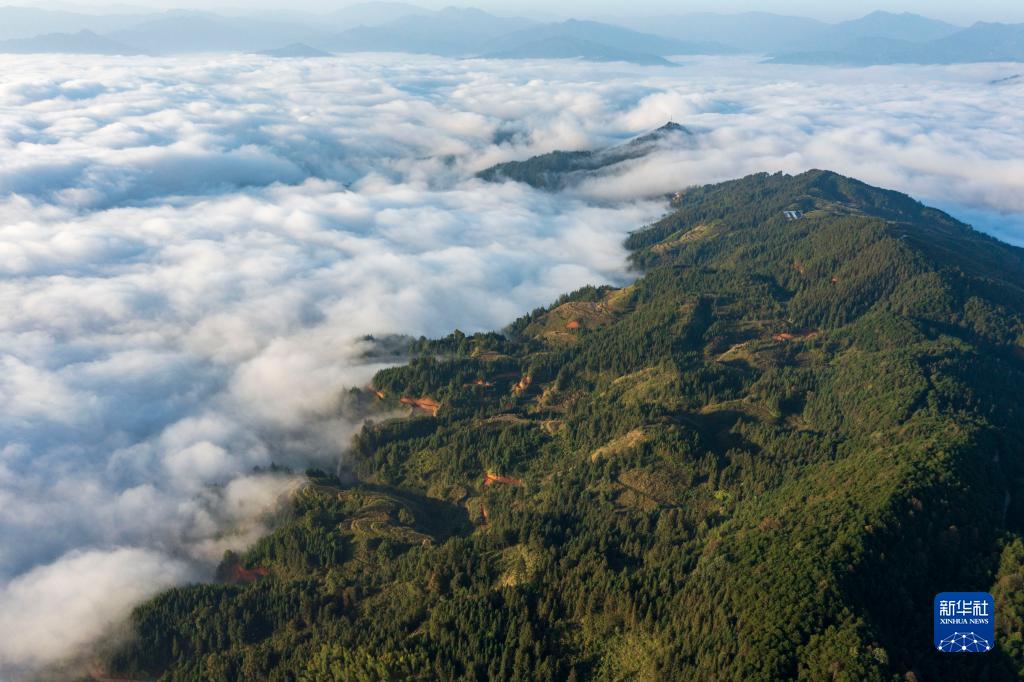 11月17日拍攝的貴州省從江縣高增鄉新生村云海景觀(無人機照片)。