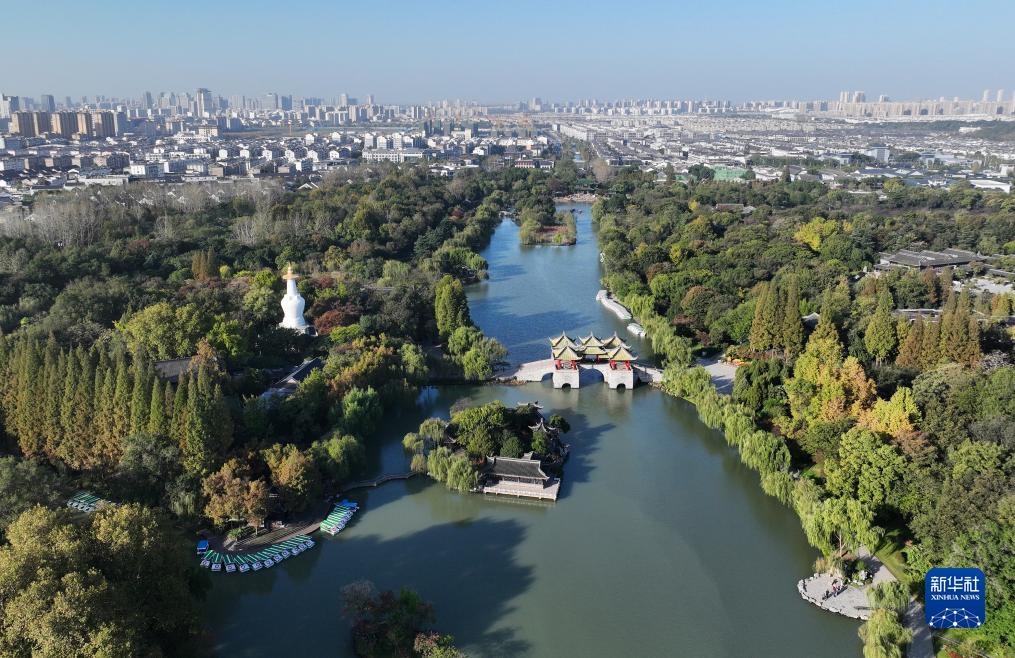 11月17日拍攝的江蘇揚州瘦西湖風景區景色(無人機照片)。