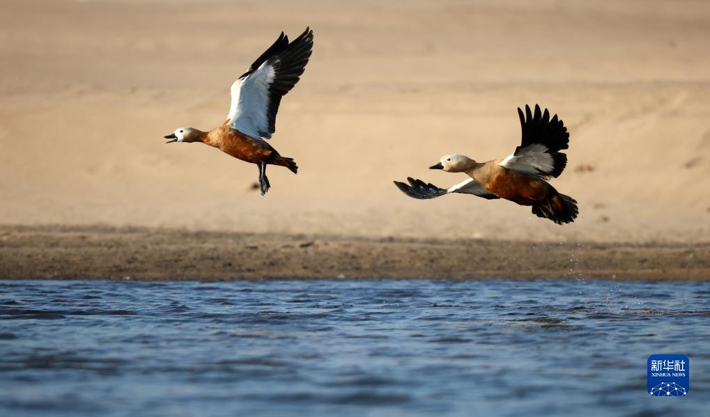 11月18日,水鳥在沂河山東省臨沂市郯城縣郯城街道段飛舞。