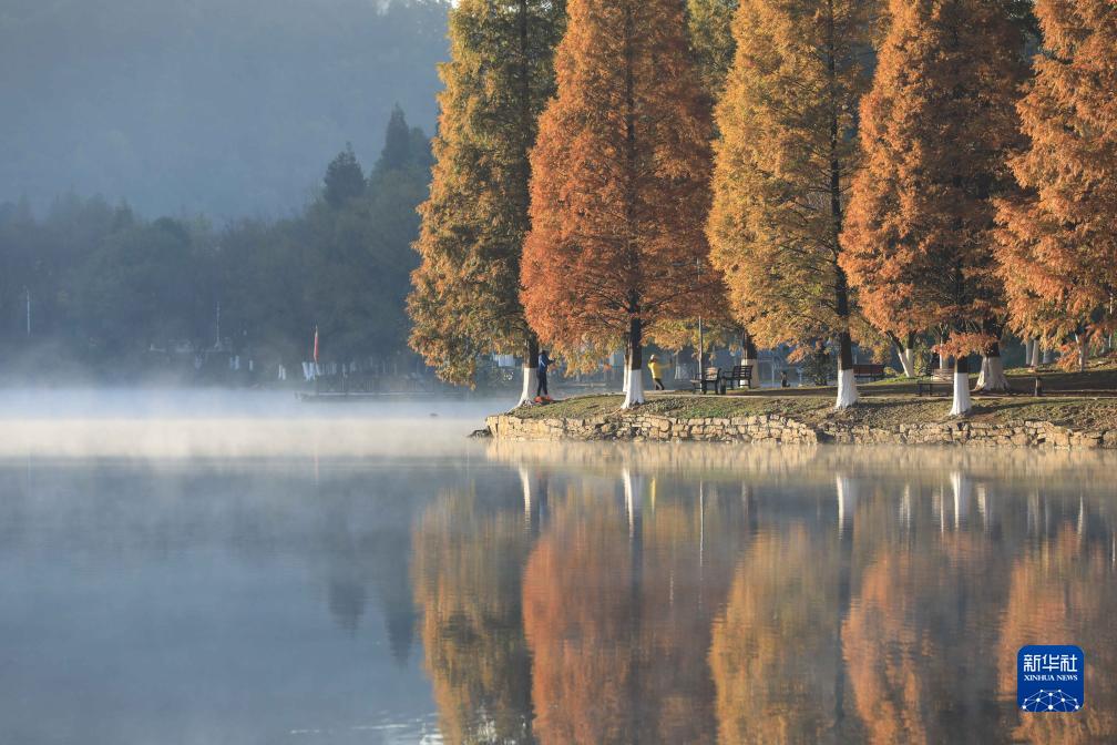 11月17日在貴州省貴陽市觀山湖區觀山湖公園拍攝的初冬景色(無人機照片)。