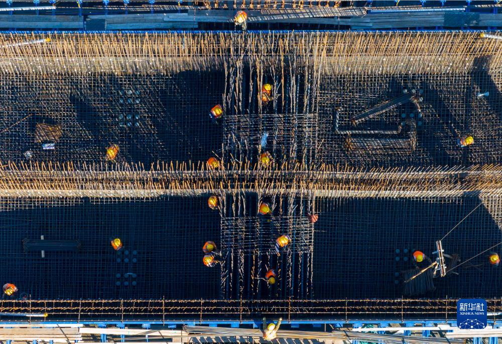 11月18日,工人在進行施工作業(無人機照片)。