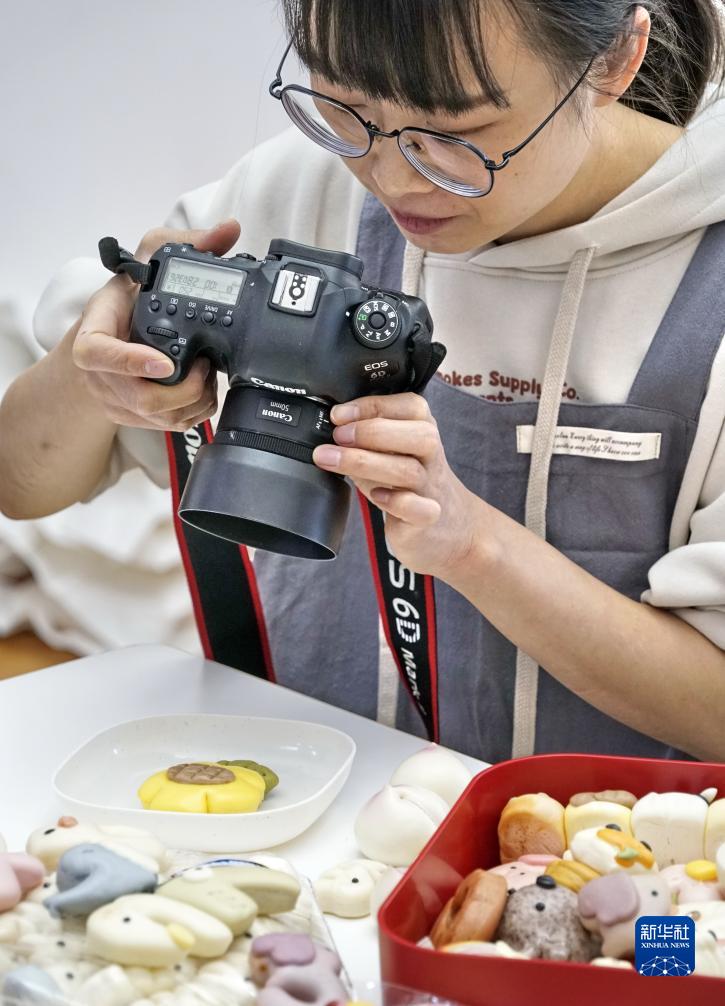 田曉在工作室拍攝面花產品(11月12日攝)。