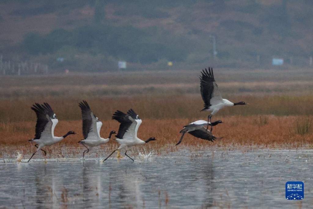 入冬以來,貴州省威寧彝族回族苗族自治縣草海國家級自然保護區陸續迎來越冬黑頸鶴。據草海國家級自然保護區管理委員會最新監測數據顯示,截至11月18日,越冬黑頸鶴數量已超1500只。